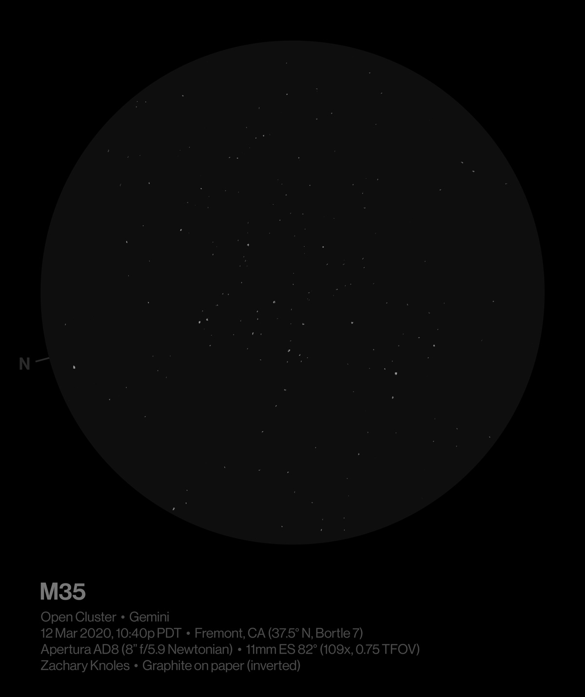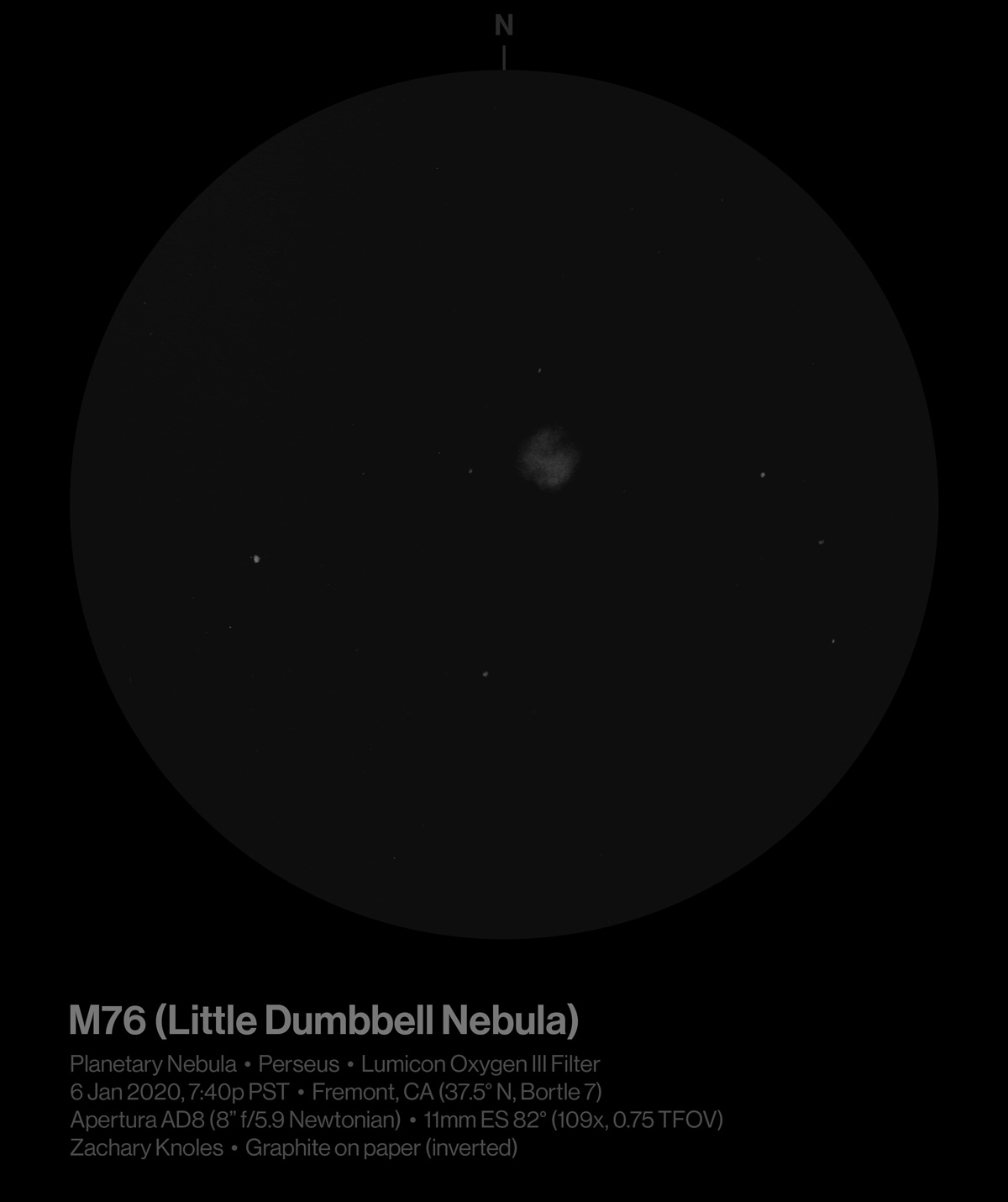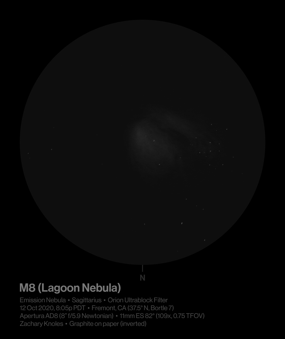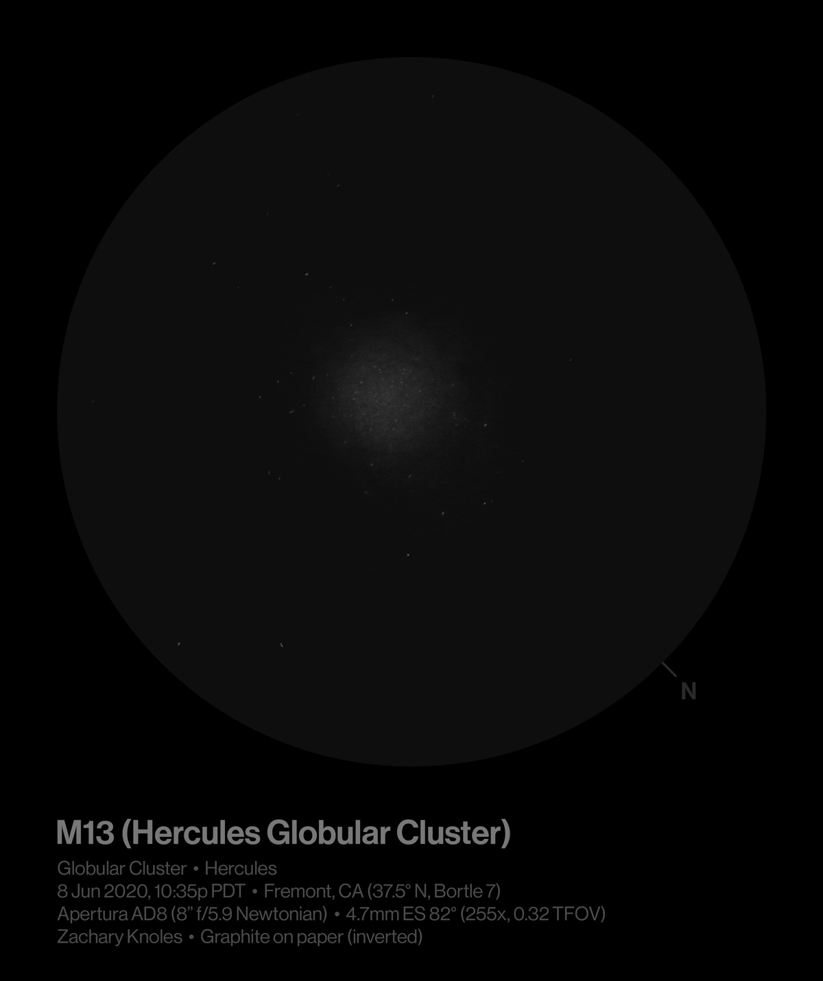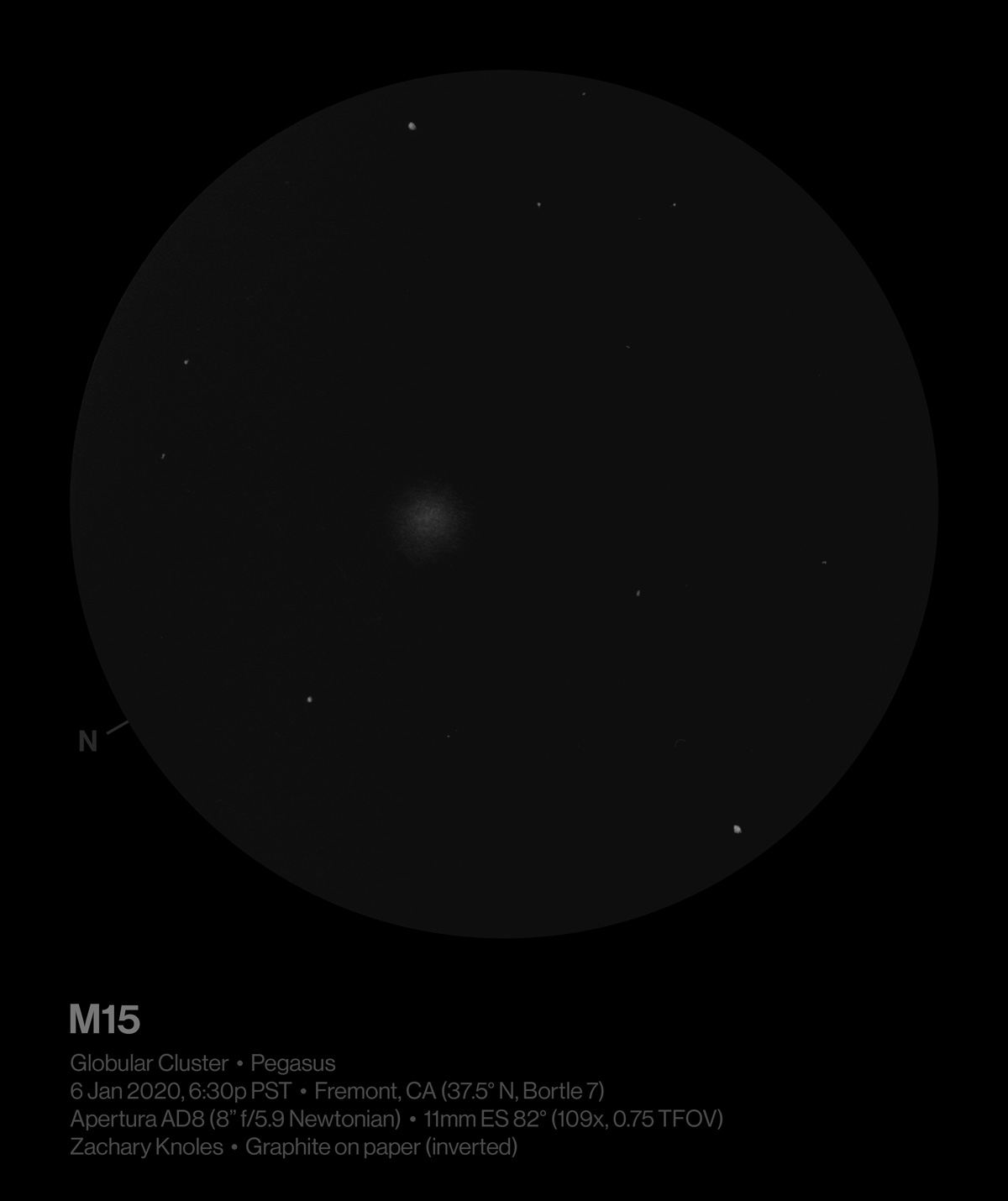 These drawings were sketched from direct observation of the night sky, whether with the unaided eye or through the eyepiece of a telescope. This isn't photography; by comparison, the views here are gray and subdued. Most of the time, that majestic nebula or galaxy appears in the eyepiece as a soft fuzzy blur, visible only with averted vision. In the light polluted skies of my backyard, many distant objects disappear entirely. And yet, when you do see it, you know it isn't a photograph. It's really there.