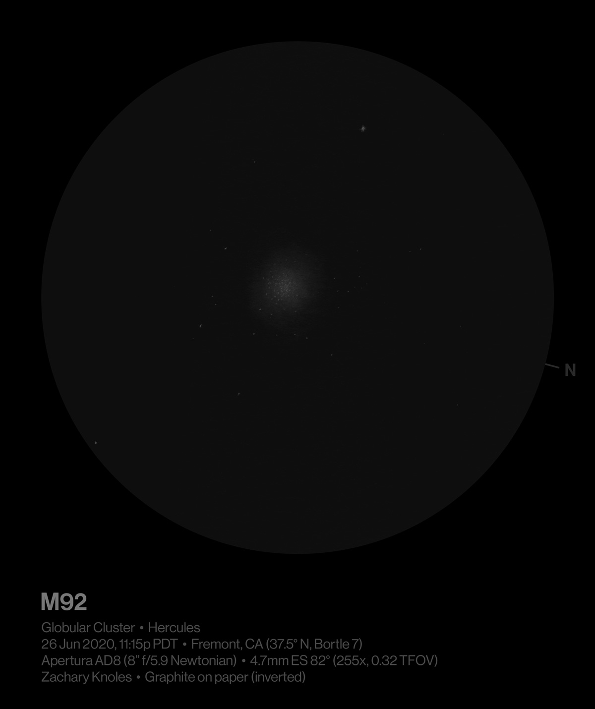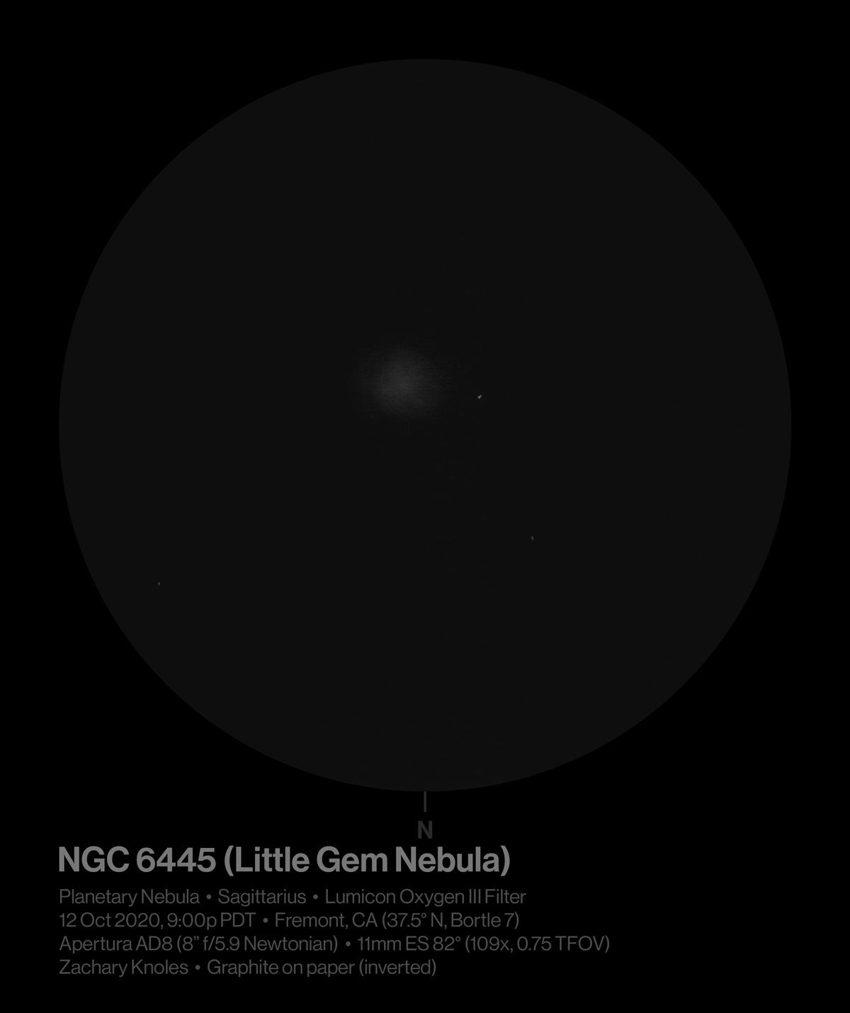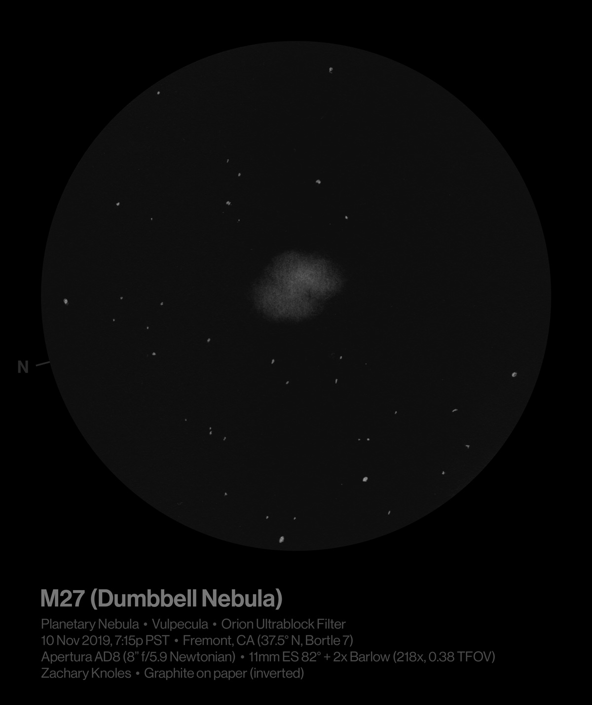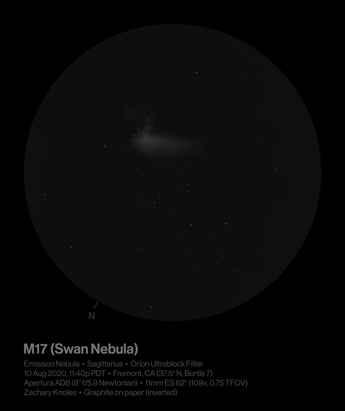 These drawings were sketched from direct observation of the night sky, whether with the unaided eye or through the eyepiece of a telescope. This isn't photography; by comparison, the views here are gray and subdued. Most of the time, that majestic nebula or galaxy appears in the eyepiece as a soft fuzzy blur, visible only with averted vision. In the light polluted skies of my backyard, many distant objects disappear entirely. And yet, when you do see it, you know it isn't a photograph. It's really there.