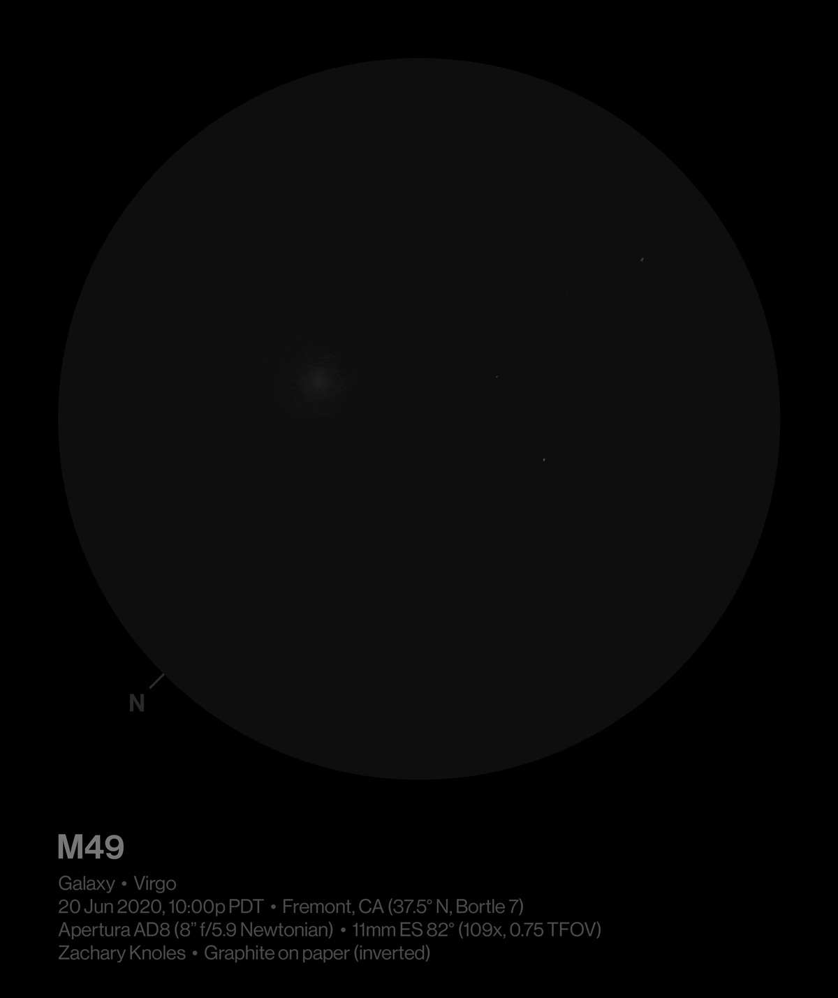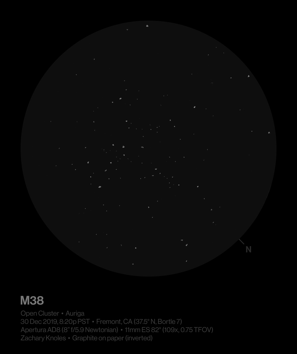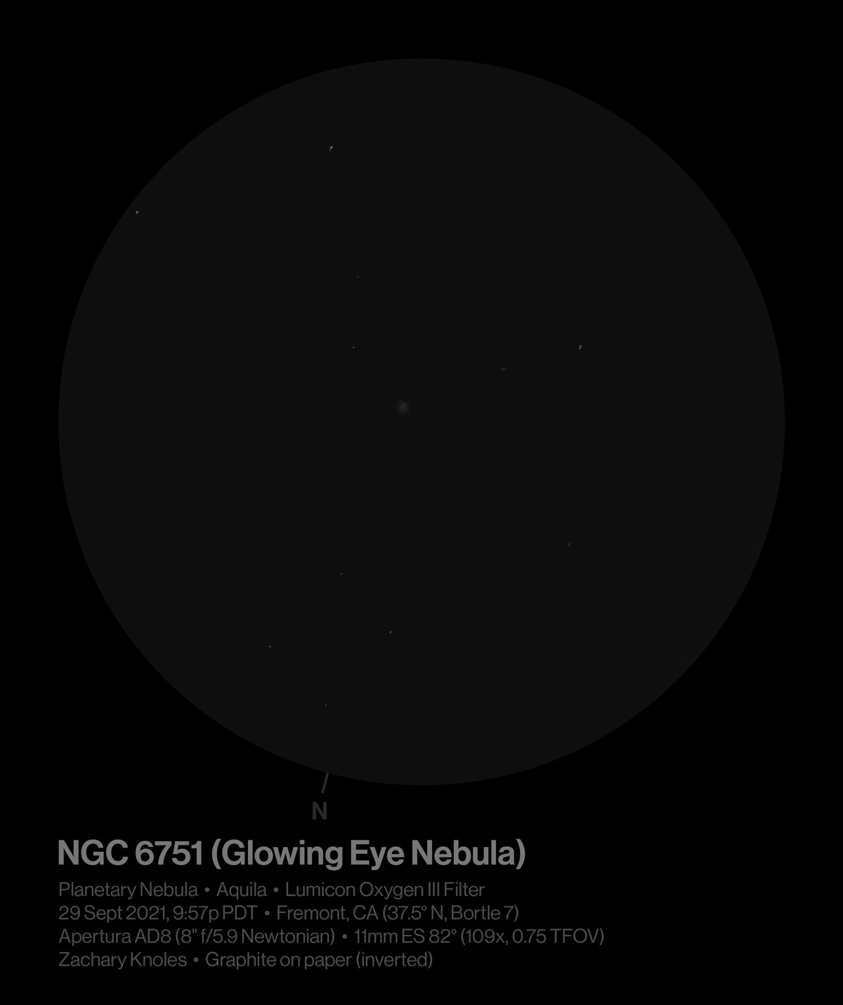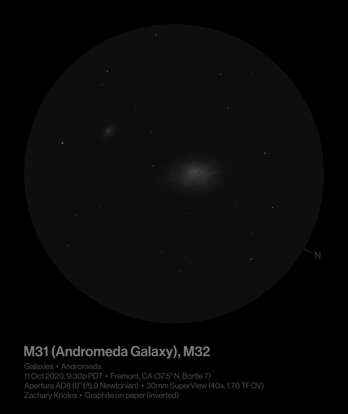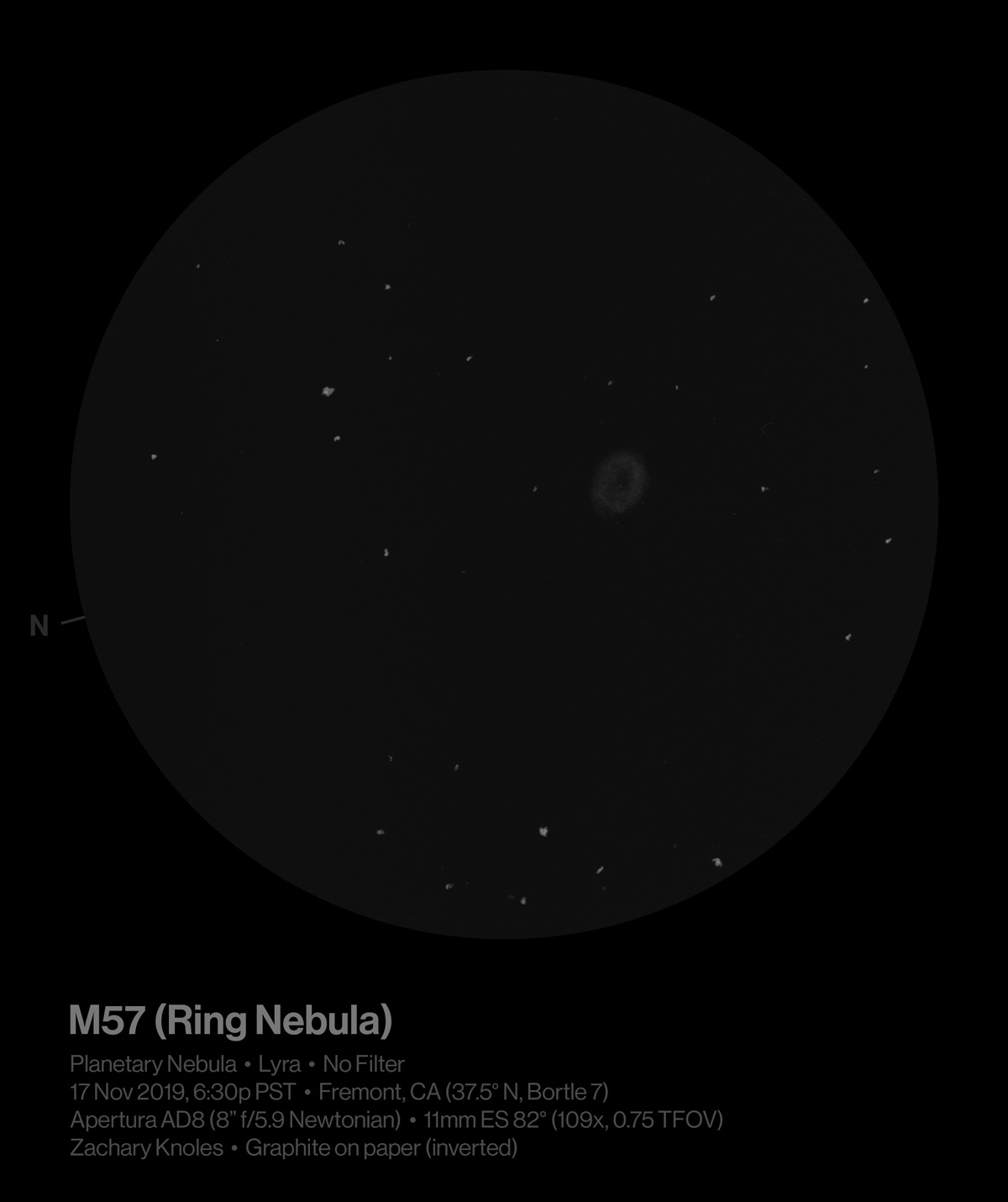 These drawings were sketched from direct observation of the night sky, whether with the unaided eye or through the eyepiece of a telescope. This isn't photography; by comparison, the views here are gray and subdued. Most of the time, that majestic nebula or galaxy appears in the eyepiece as a soft fuzzy blur, visible only with averted vision. In the light polluted skies of my backyard, many distant objects disappear entirely. And yet, when you do see it, you know it isn't a photograph. It's really there.