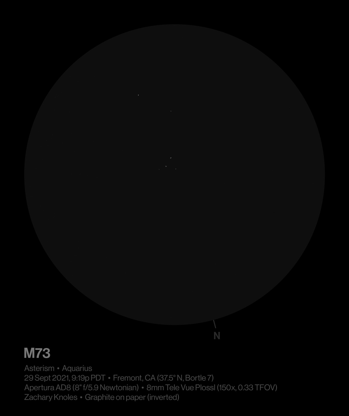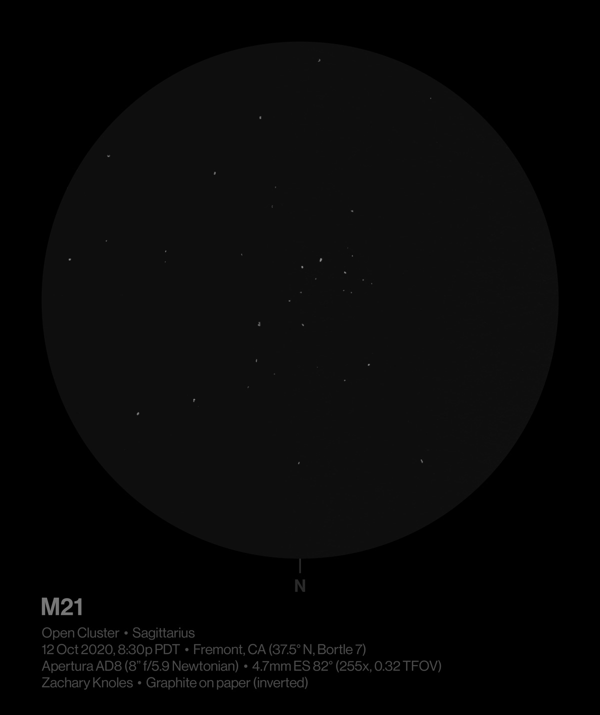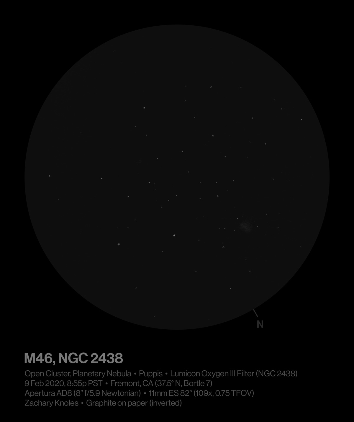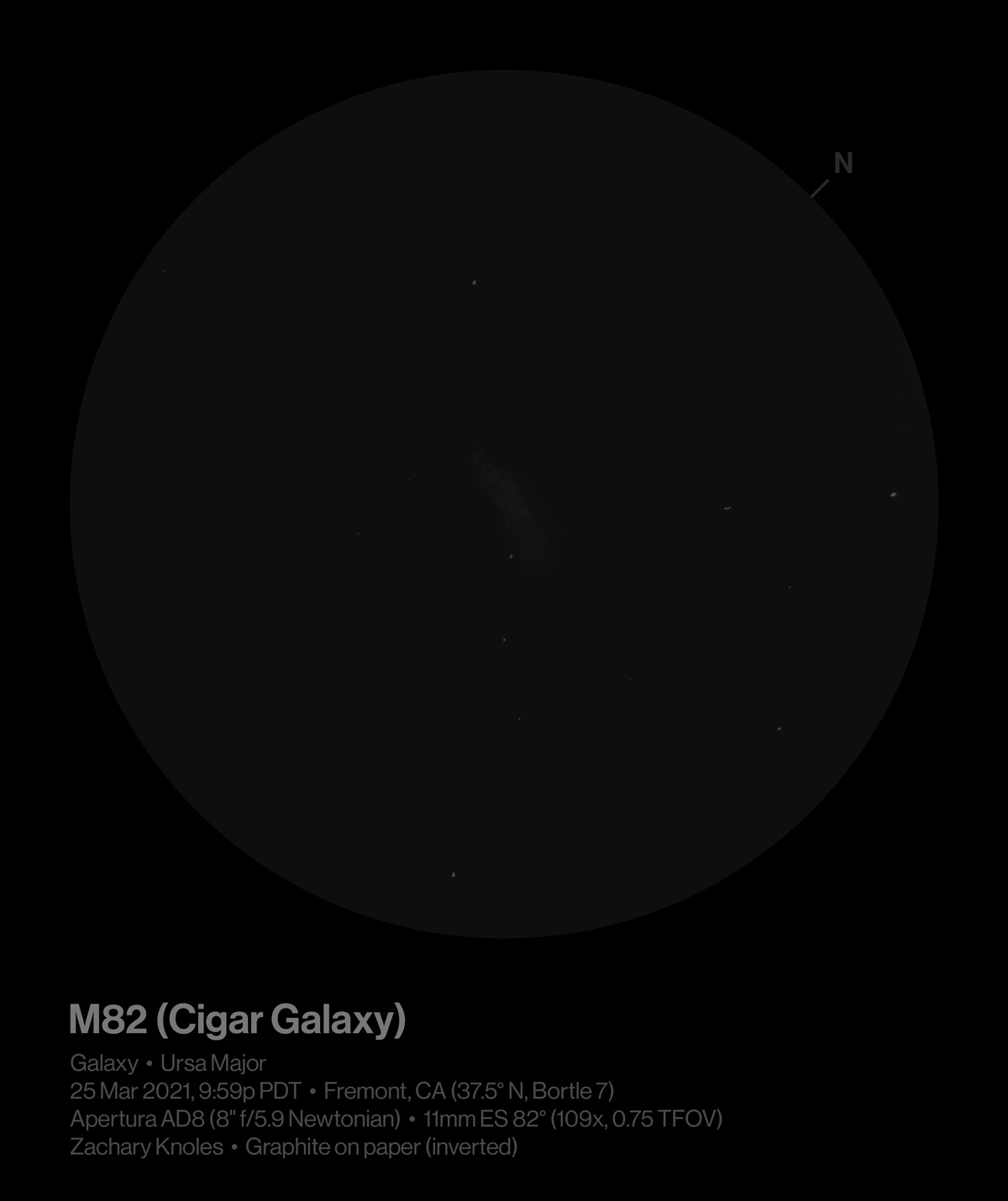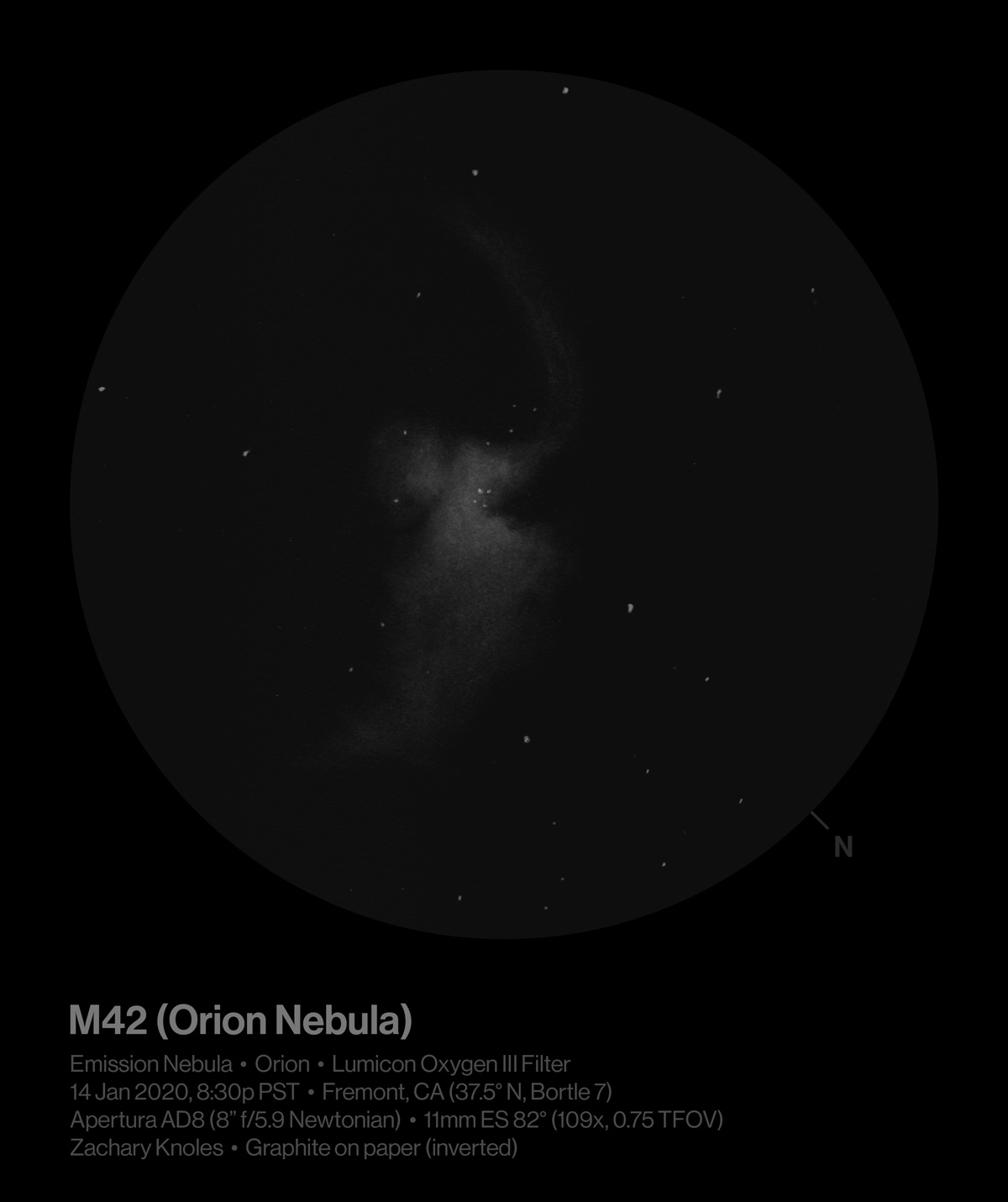 These drawings were sketched from direct observation of the night sky, whether with the unaided eye or through the eyepiece of a telescope. This isn't photography; by comparison, the views here are gray and subdued. Most of the time, that majestic nebula or galaxy appears in the eyepiece as a soft fuzzy blur, visible only with averted vision. In the light polluted skies of my backyard, many distant objects disappear entirely. And yet, when you do see it, you know it isn't a photograph. It's really there.